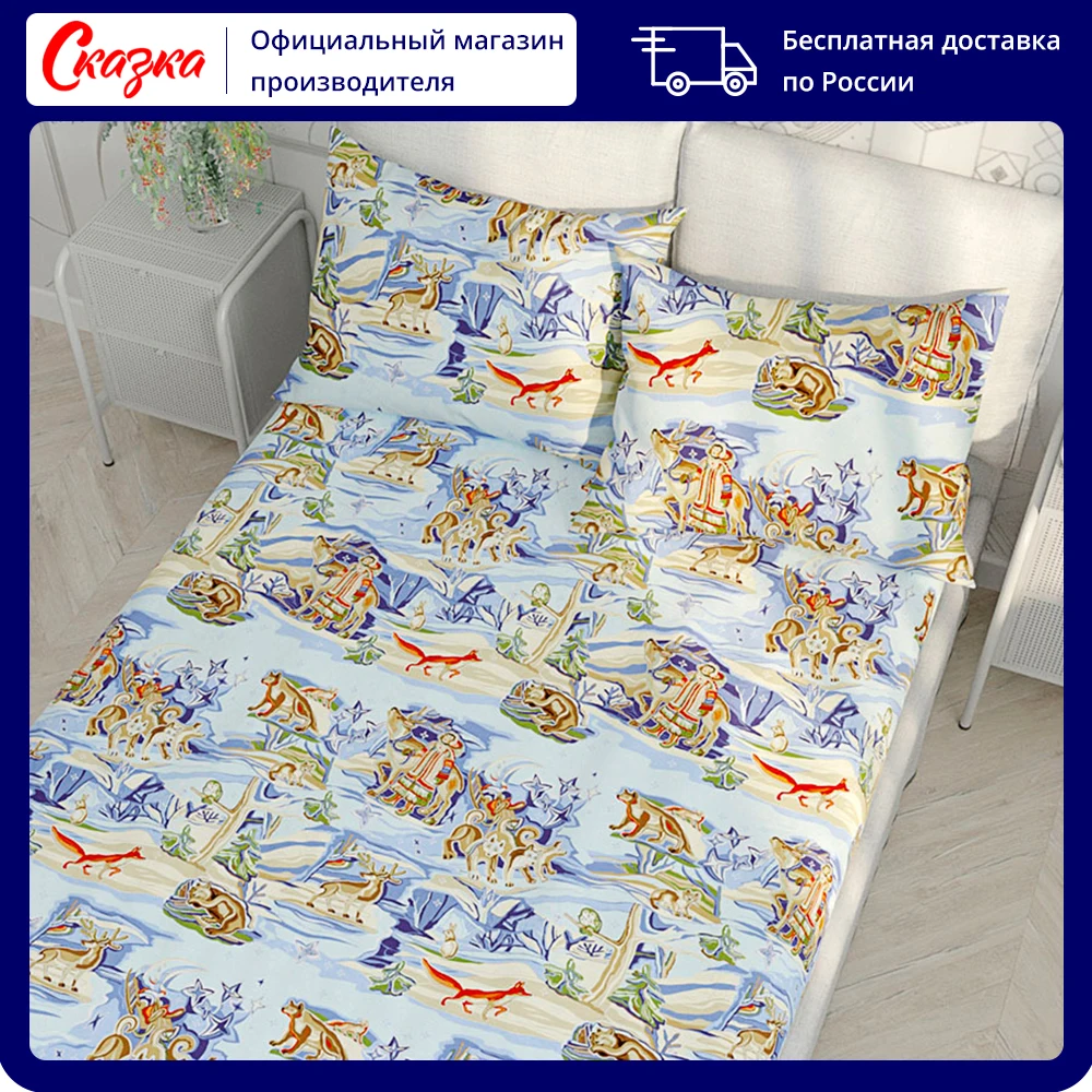 Натяжная простыня на резинке Cказка "Сказки севера" 90*200 120*200 140*200 160*200 180*200 100% хлопок