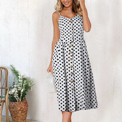 Женское винтажное платье миди на пуговицах, повседневное пляжное пл...