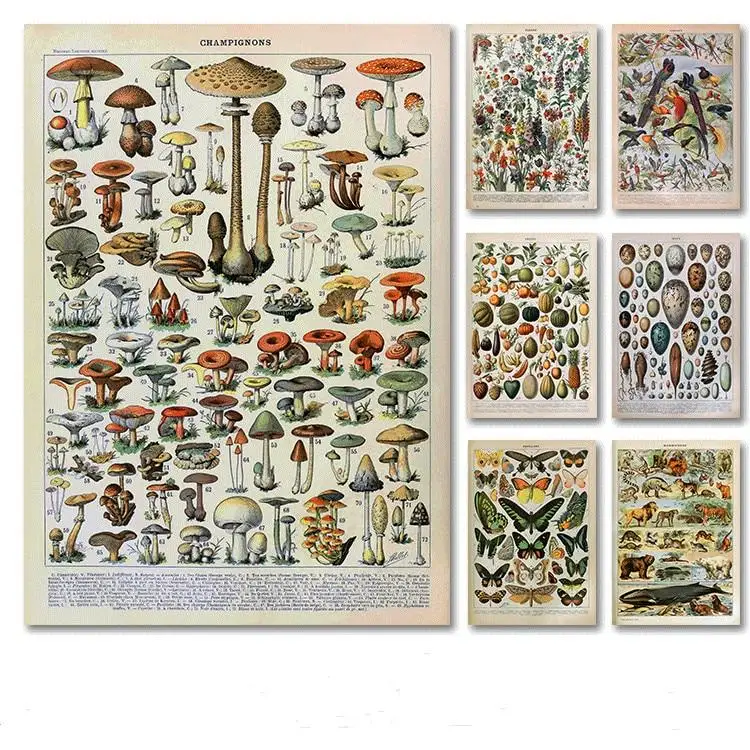 Плакат Palaeobios с изображением растений, цветов, животных, насекомых, бабочек, грибов, настенная живопись, картина маслом, домашний декор