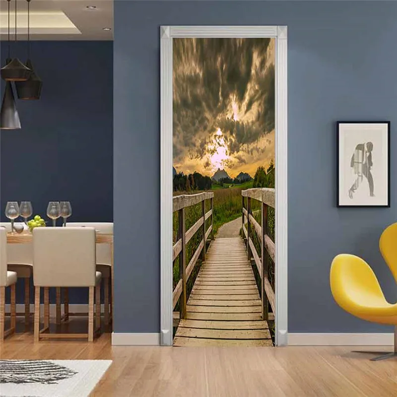 Наклейки в стиле ретро с лестницей, художественные наклейки для двери, Свежий Природный пейзаж, плакаты на дверь, домашний декор, самоклеящиеся наклейки для ремонта комнаты