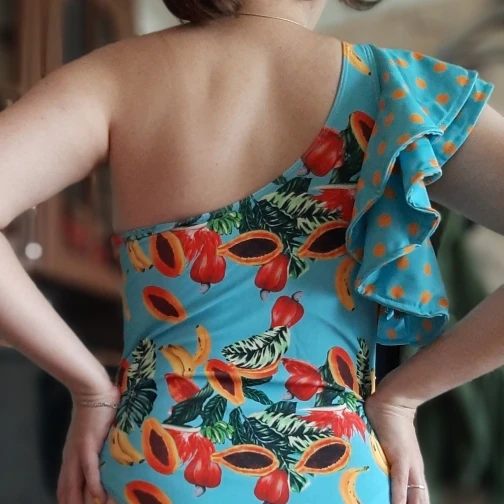 Слитный купальник на одно плечо Заказала размер М на параметры 90-67-90 и рост 160 Подошёл хорошо. Держится купальник на плече и груди хорошо за счет резинки. Пояс пришит и завязывается спереди. Нижняя часть достаточно завышена, до косточки. Воланы на плече достаточно тяжелые, но смотрится интересно. По ощущениям купальник как будто бандажный, утягивающий. Продавец так же указывает это на странице товара Качество отличное, рекомендую!