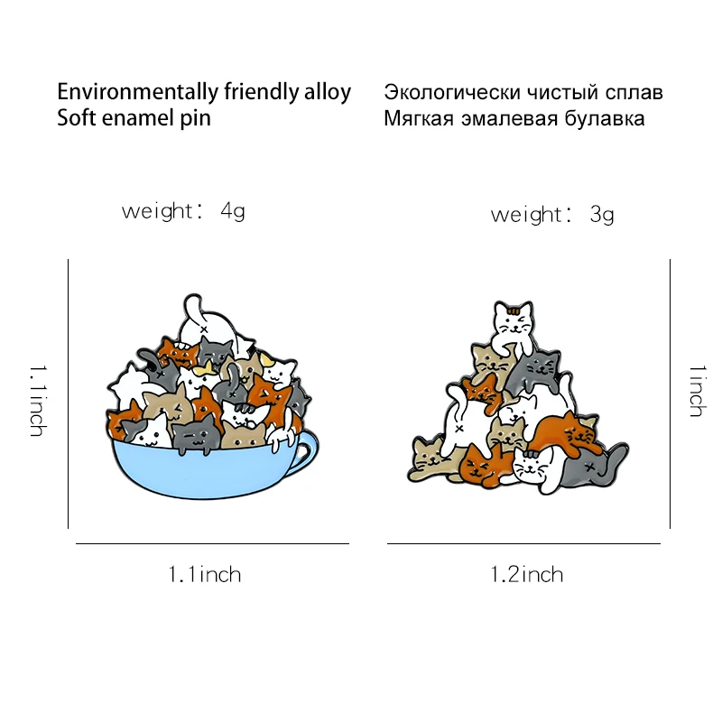 Группа котят кошка чаша эмаль брошь сваи высота стопки смешные игры милые животные лацкан булавка мультфильм значок Подарки для ребенка