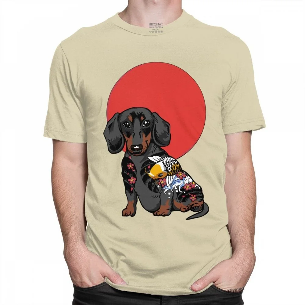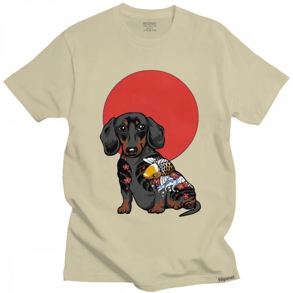 Футболка мужская с рисунком таксы, забавная тенниска в японском стиле Якудза с коротким рукавом, топ из чистого хлопка для влюбленных, идея подарка, на лето