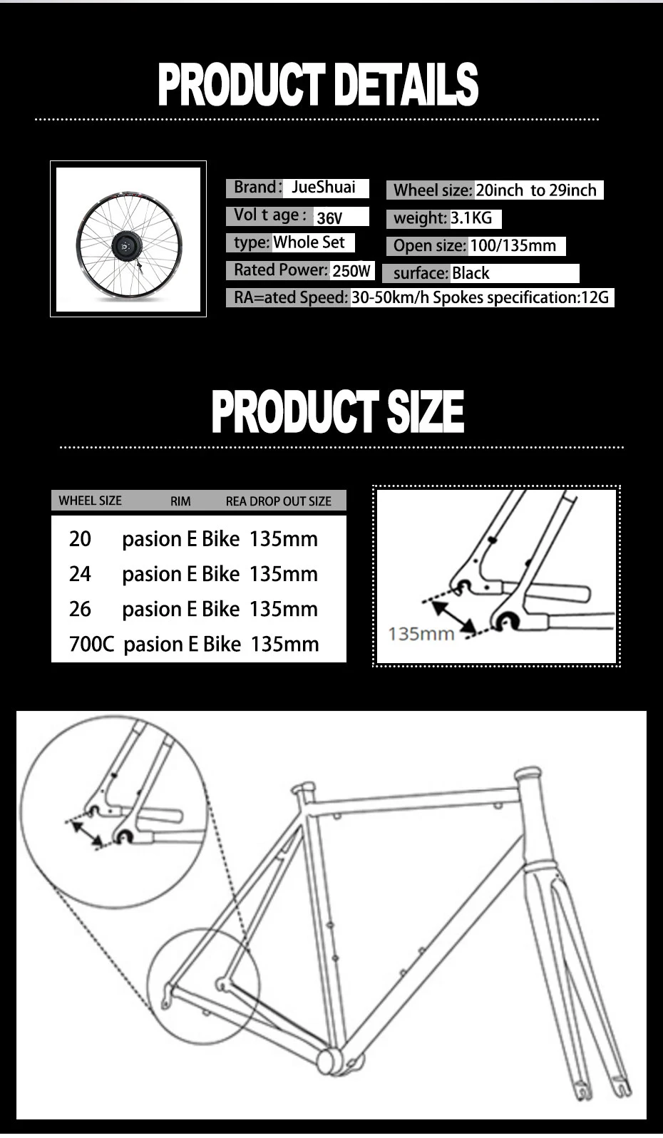 Electric Bike motor wheel size20"24''26"27.5''700C(28") velo electrique