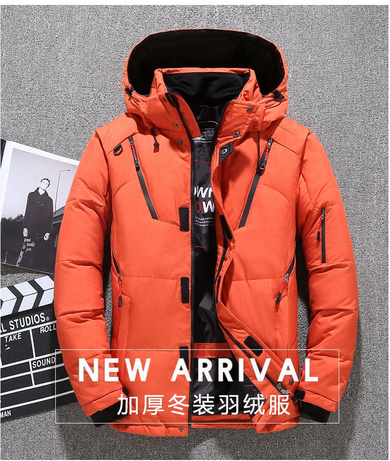 Для температуры до-20 градусов, зимняя куртка-пуховик с белым утиным пухом, куртка для мужчин, модная зимняя куртка с капюшоном и воротником; Защита от ветра; Пуховое пальто для мужчин; Сохраняют тепло; Утепленная куртка Верхняя одежда для детей