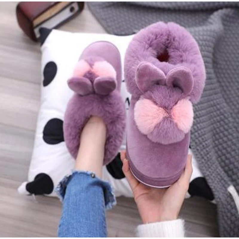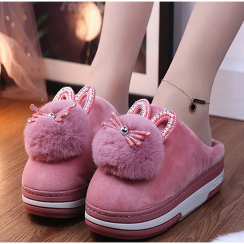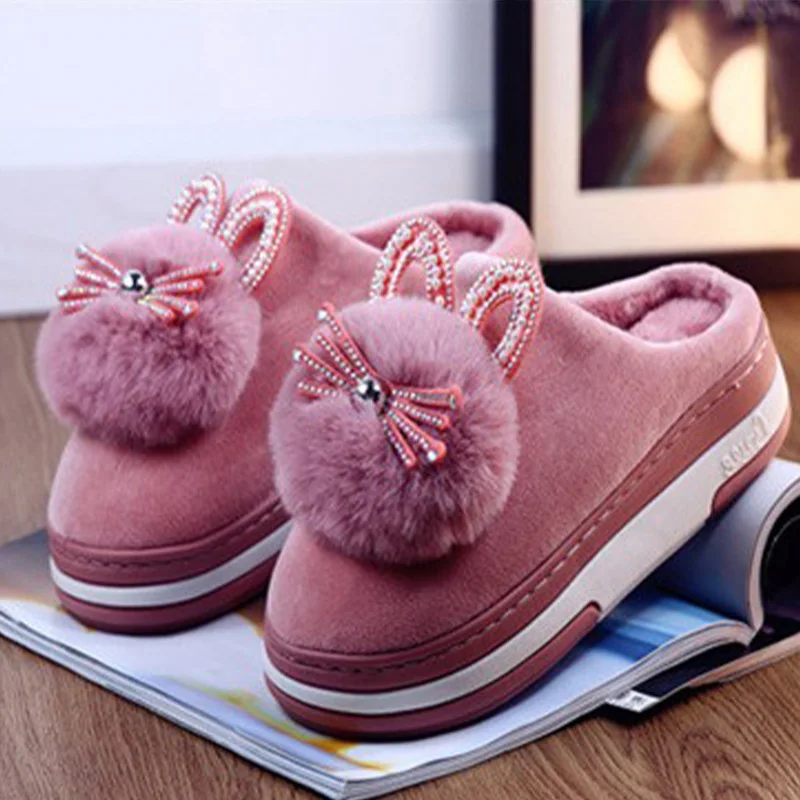 Женские зимние тапочки, пушистые плюшевые женские тапочки, домашняя обувь, повседневная женская мягкая удобная теплая обувь, женские пушистые уши кролика