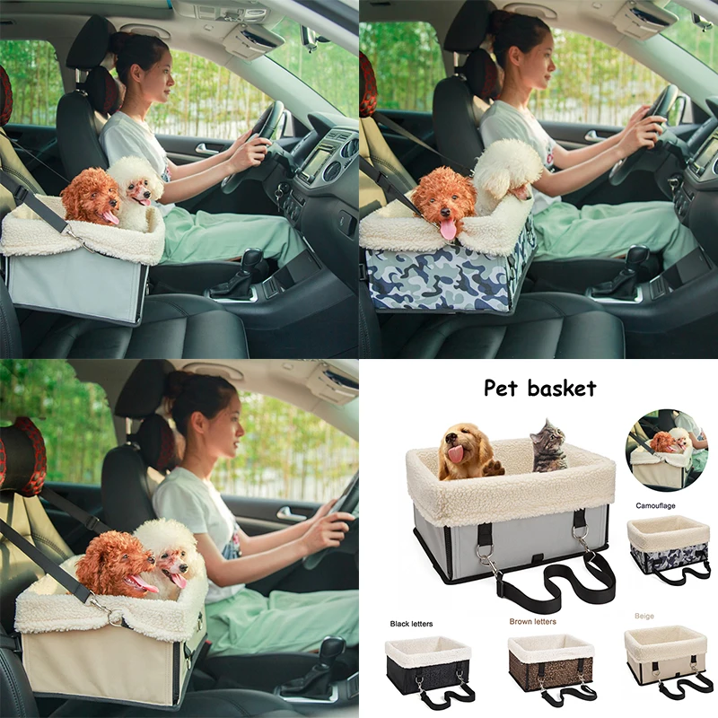 Автомобильное сиденье для домашних питомцев, безопасная переноска на осень и зиму, щенок, Толстая теплая корзина из овечьей шерсти, складная кровать, для путешествий, для улицы 3, нескользящая