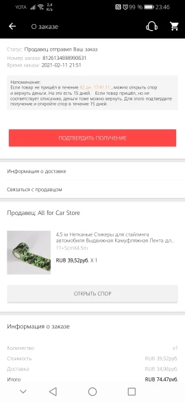 Страна: RU Color Name: 05 Size: 5cmX4.5m Доставка: Cainiao Super Economy 27.03.2021