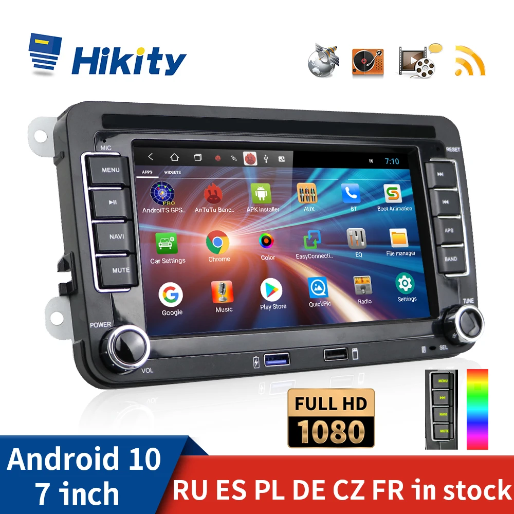Мультимедийный плеер Hikity, плеер на Android, с GPS, для VWVolkswagenGolfPassatb7b6SkodaSeatOctaviaPoloTiguan, типоразмер 2 Din