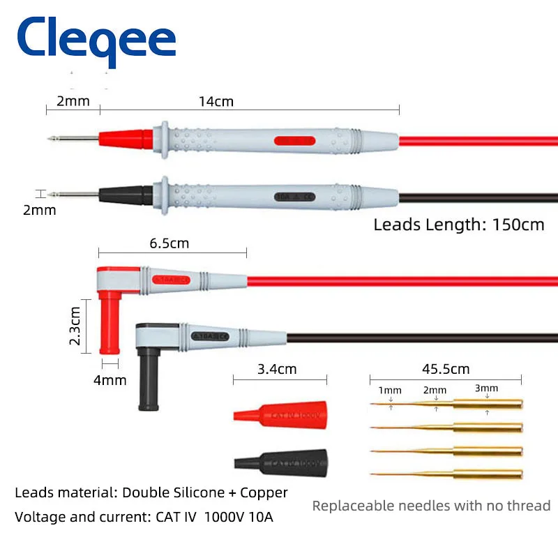 Cleqee P1500 Series датчики для мультиметра 4 мм комплект тестовых щупов с вилкой типа банан, тестовая ручка со сменными иглами 1000 в 10 А