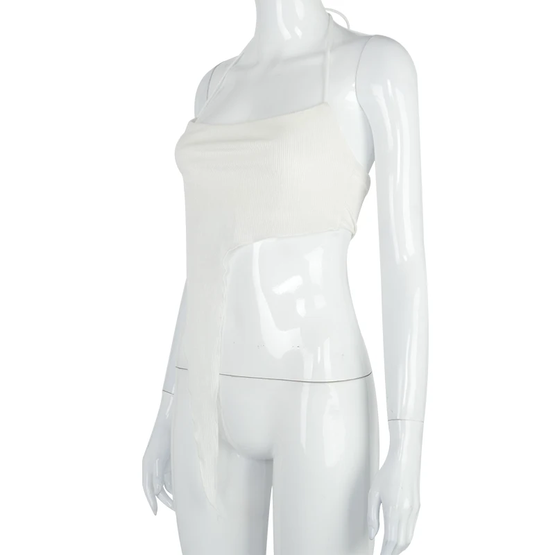 Женский топ на бретельках, белый топ с открытой спиной, асимметричн...