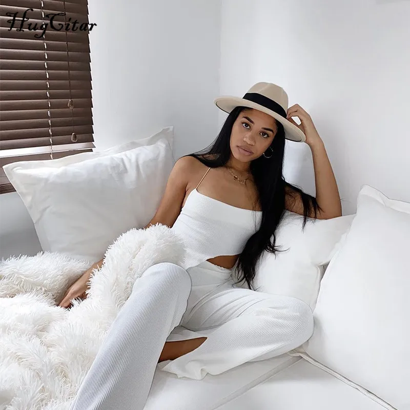 Женский укороченный топ Hugciter, белый асимметричный топ без рукавов с лямкой на шее, модная клубная одежда, осень-зима 2020