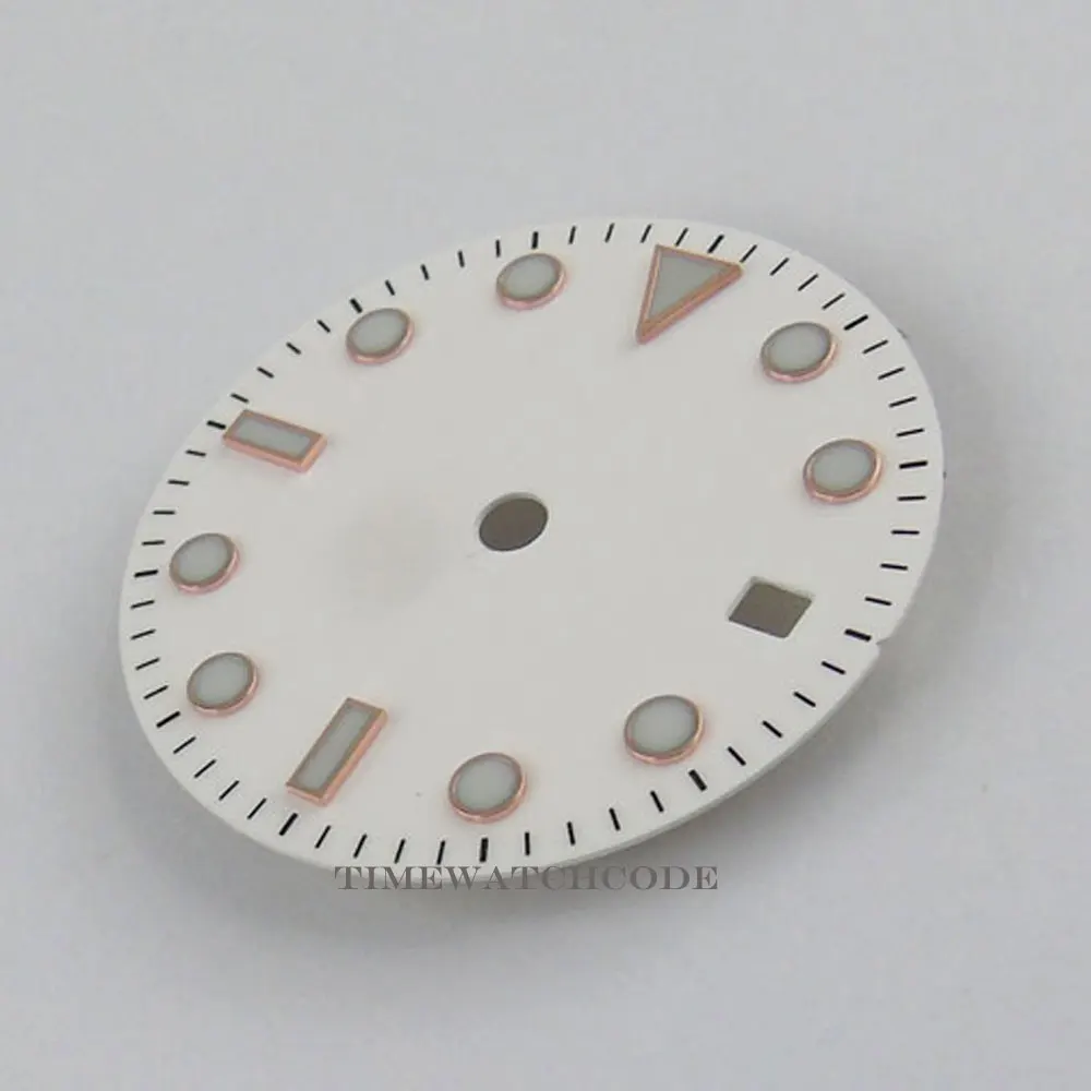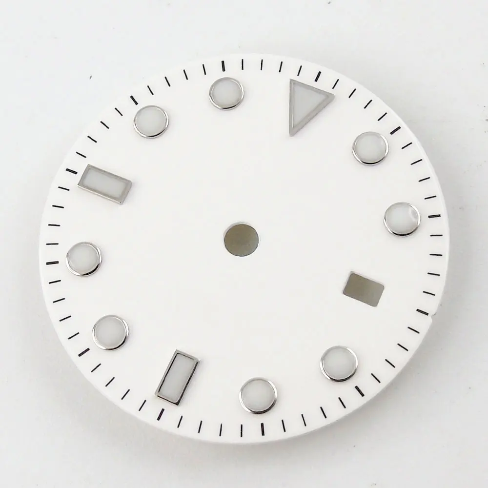 28,5 мм белая Стерильная циферблате деталей подходит для NH35 NH35A движение Золотой светящиеся знаки