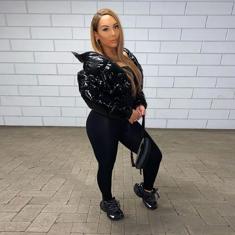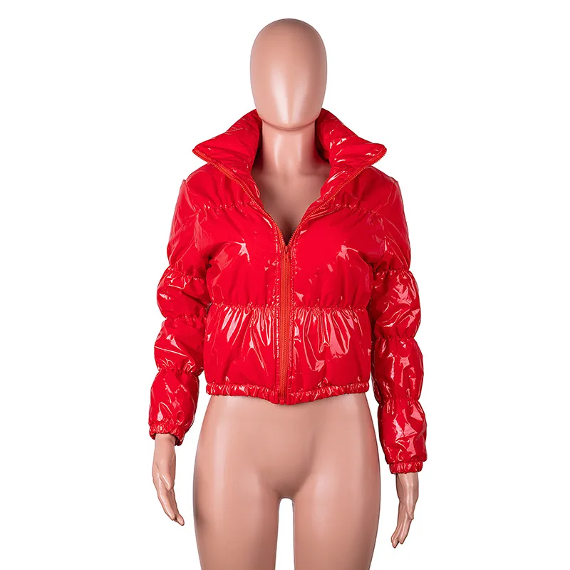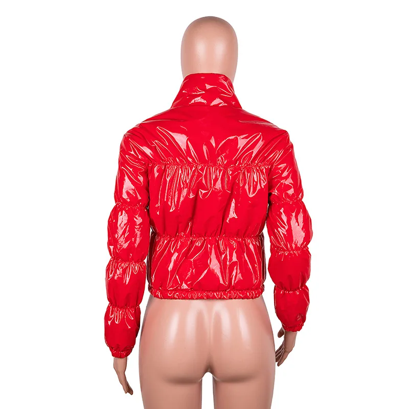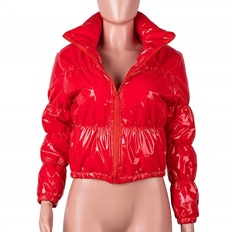 Теплая Толстая Женская куртка-пуховик из лакированной кожи, на молн...