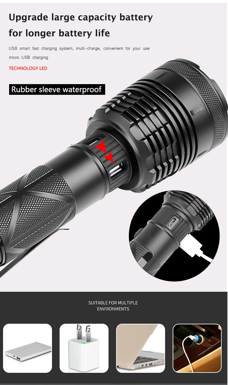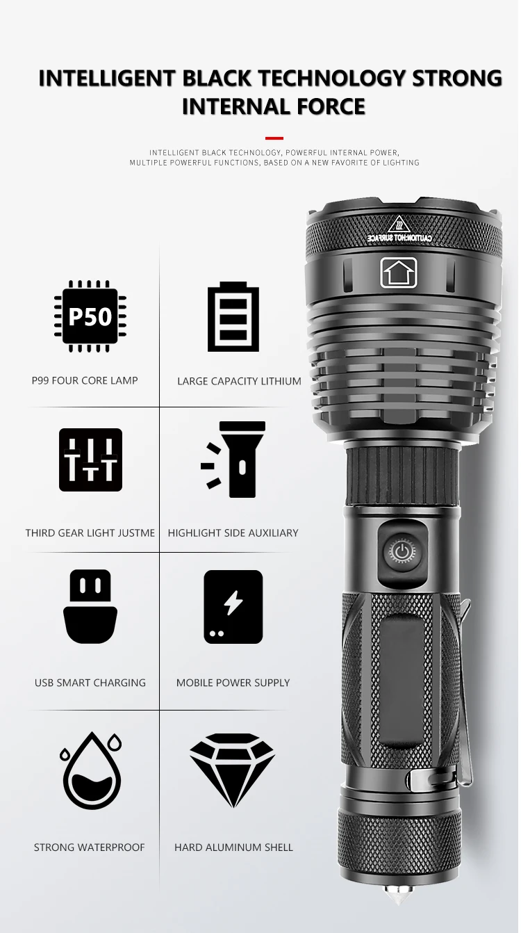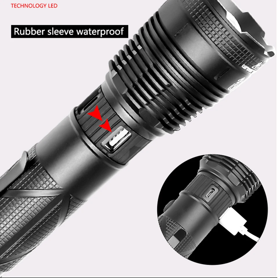 Фонарик XHP90.2 с 4 ядрами, светодиодный перезаряжаемый внешний акк...
