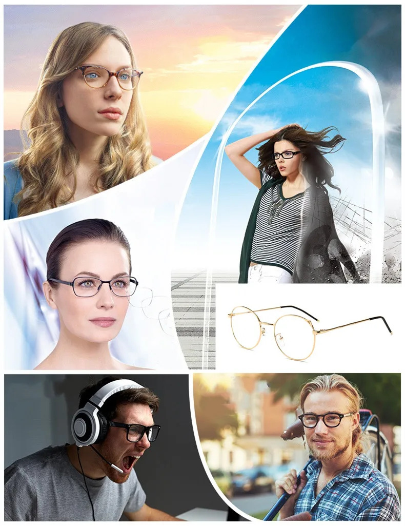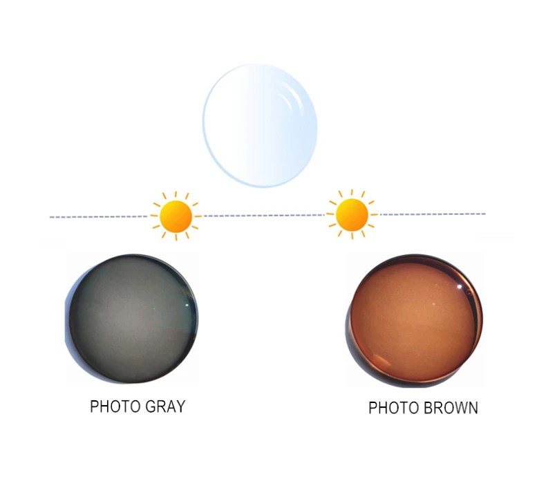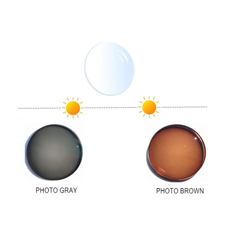 ЭтоФотохромныйОчки по рецепту дляБлизорукостьЛинзы будут прозрачными и бесцветными в помещении или в темных местах, но они изменят цвет на улице или на солнце, чтобы защитить ваши глаза от сильного светильник.