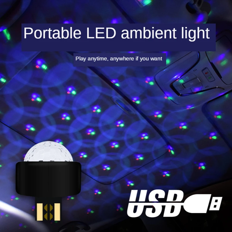 Украшение интерьера автомобиля, светодиодные миниатюрные огни в виде ритма, маленький волшебный шар, сценическое освещение для дискотеки, цветные USB атмосферные огни