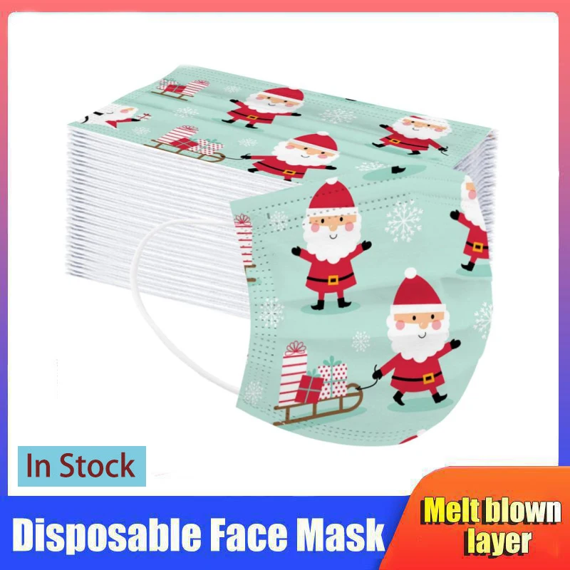 Детская одноразовая медицинская маска для лица, защитная трехслойная одноразовая маска с принтом, рождественские маски Санты, быстрая доставка