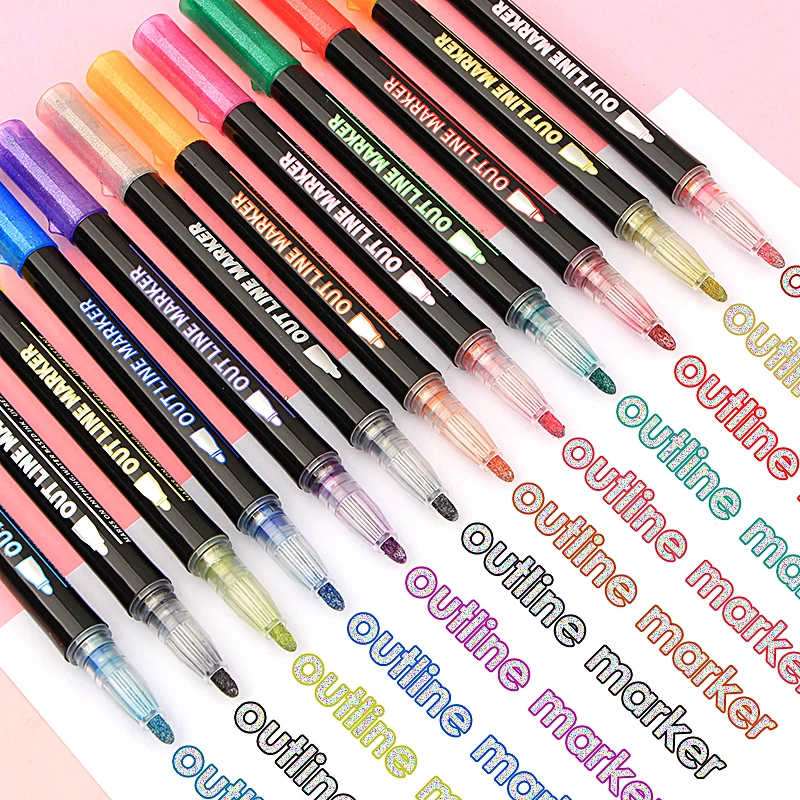 Набор ручек с двойными линиями, 12 цветов, волшебный маркер металлического цвета, фломастер для рисования, письма, школьные принадлежности