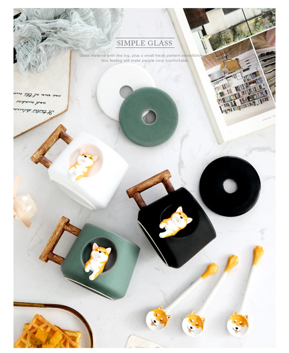Креативная керамическая кружка с крышкой и ложкой, милые кружки для кофе, молока, милые домашние чашки для завтрака для девочек на Рождество