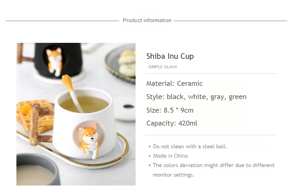 Материал: керамика Стиль: черный, белый, зеленый Размер: 8,5*9 см Емкость: 420 мл Посылка: 1 чашка, 1 губа, 1 ложка