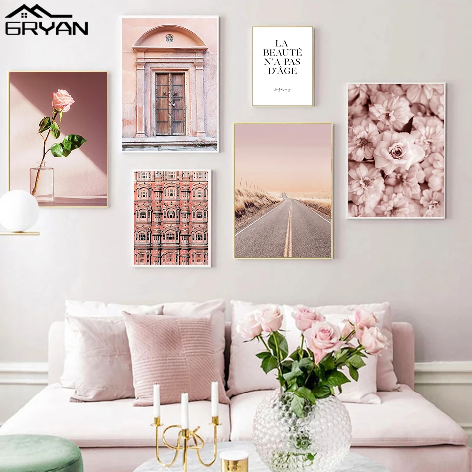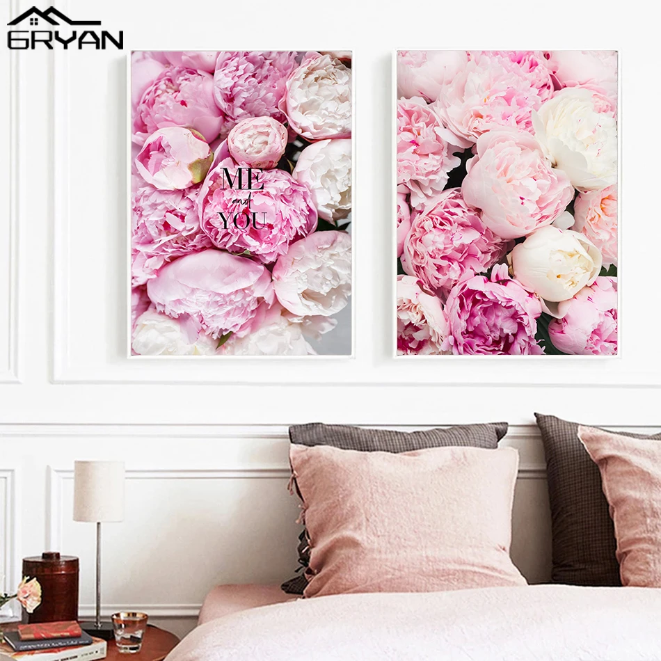 Розовый розовый цветок пиона цветение, холст, картина, Скандинавская архитектура, настенный плакат, пейзаж, украшение для гостиной