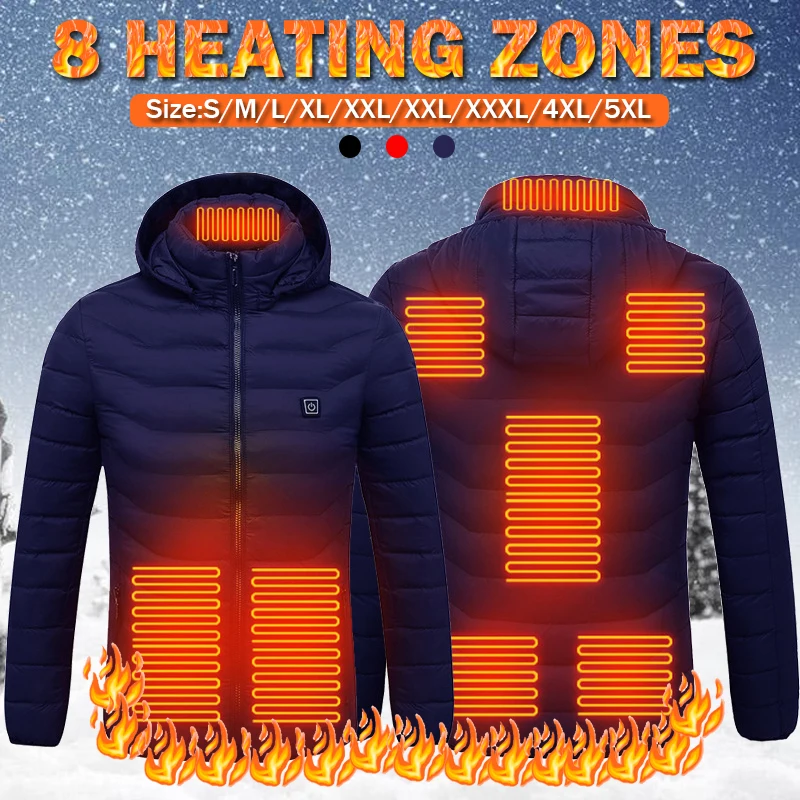 Куртка с подогревом унисекс, теплое пальто с USB-разъемом, одежда для улицы, жилет с капюшоном и подогревом в 8 областей