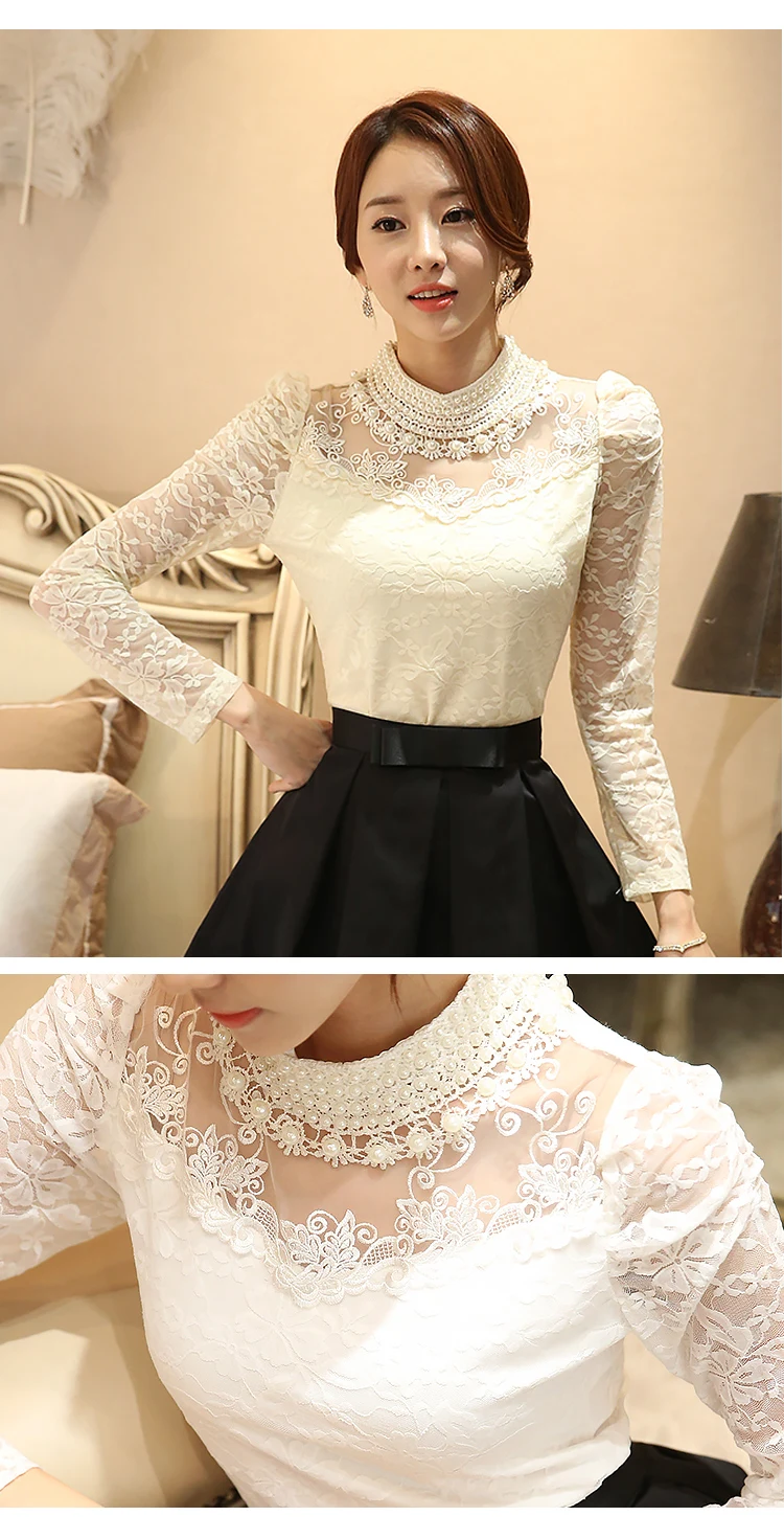 Элегантная женская кружевная рубашка с длинными рукавами и бисером,...