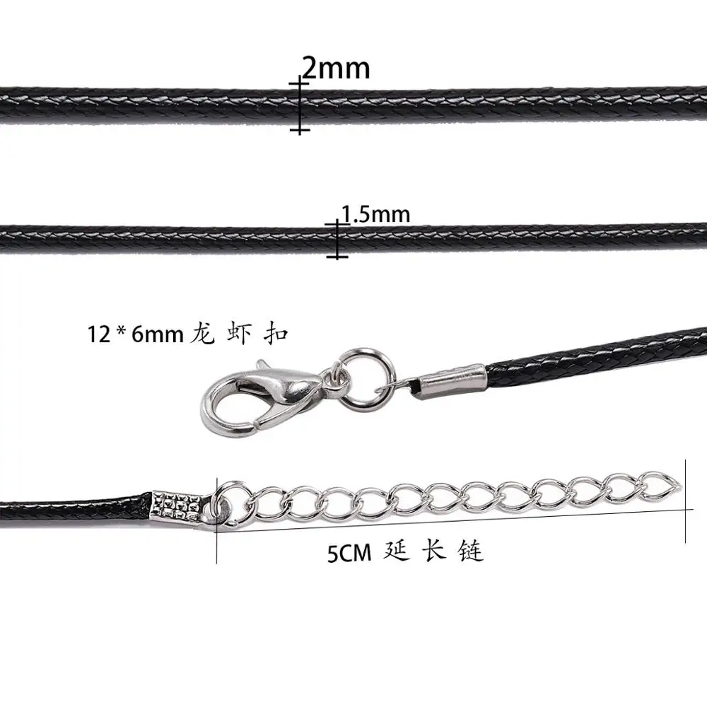 Кожаный шнур 10 шт.лот 1,5 мм, черный, коричневый, цветной, регулируемый, Плетеный, 50 см, веревка для сделай сам, для ожерелья, браслета, изготовления ювелирных изделий