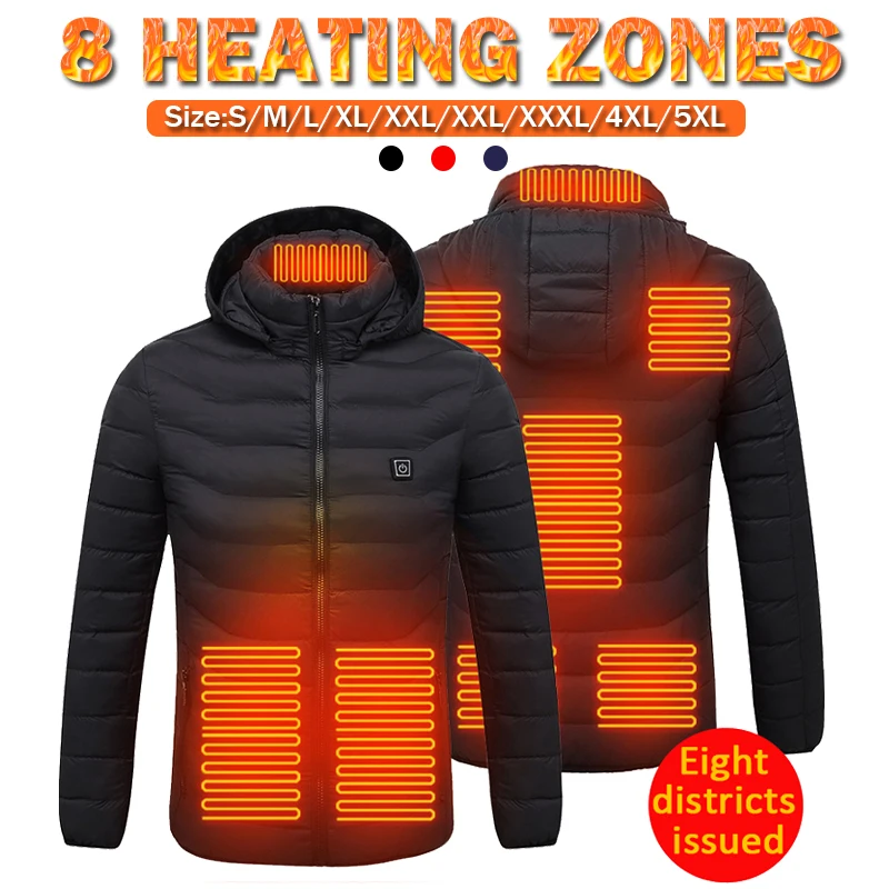 Умная куртка унисекс с электрическим подогревом, уличное спортивное пальто, зимнее пальто с шапкой и USB, жилет с электрическим подогревом для 8 областей, теплая одежда