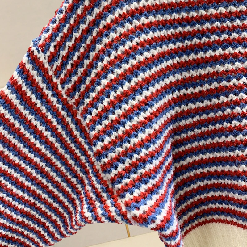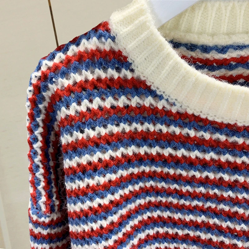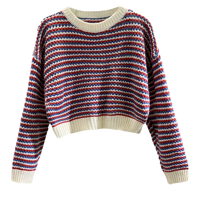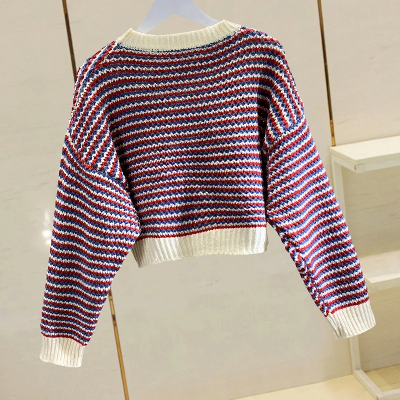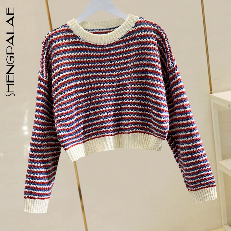SHENGPALAE женский новый весна осень 2021 короткий свитер с длинным рукавом свободный круглый вырез полосатый вязаный пуловер тренд женский 5A356