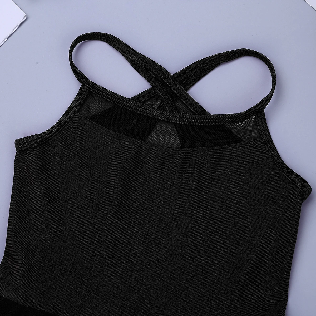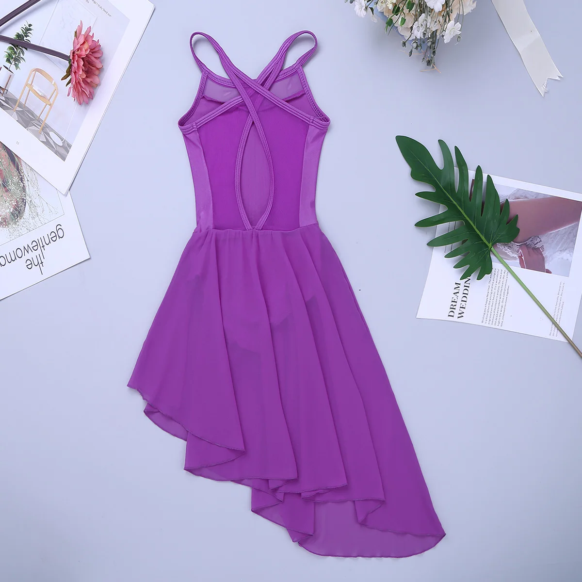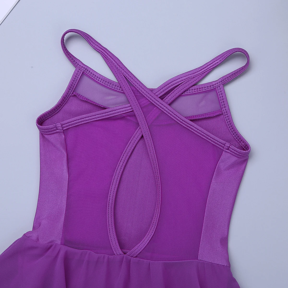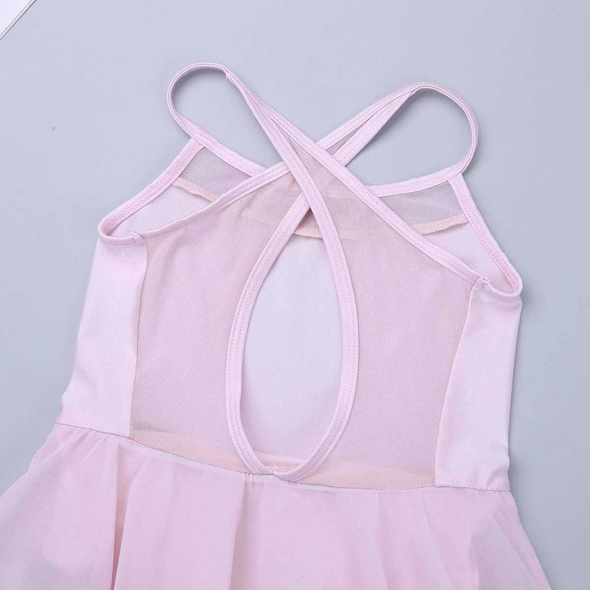 Детская Балетная платье-трико для девочек, танцевальная одежда, сетчатая юбка-пачка с вырезом на спине, платье, гимнастический купальник для балета
