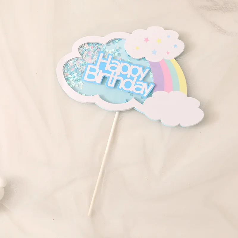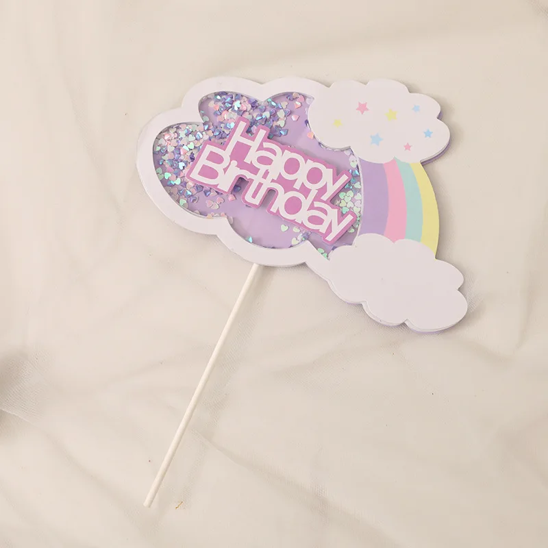 Прелестное украшение розового и фиолетового цветов синий блеск с блестками Прозрачный Радуга номер Happy топперы для торта на день рождения с изображением единорога