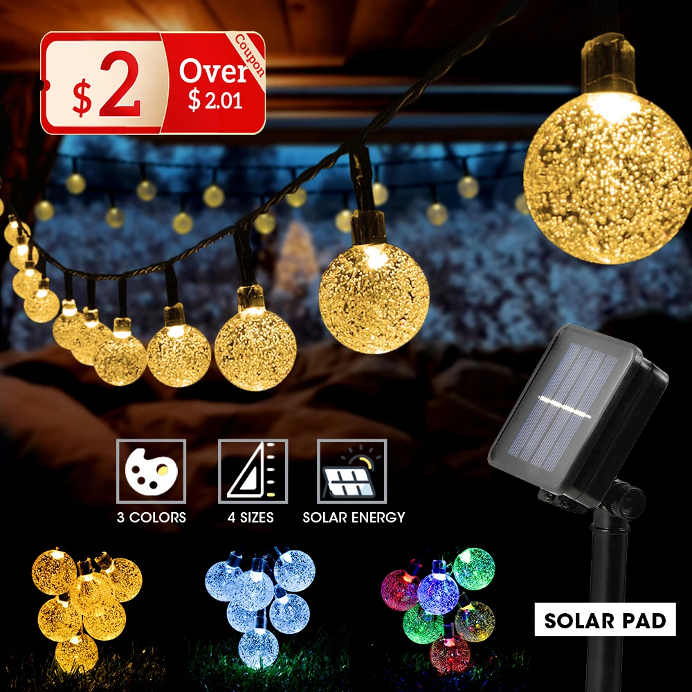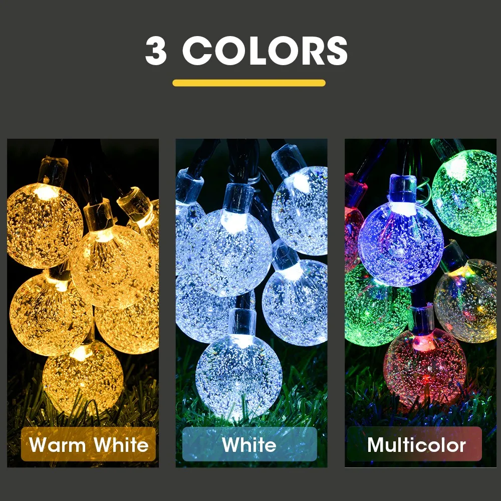 Уличная светодиодная гирлянда на солнечной батарее, 8 режимов, уличная лампа с хрустальными шариками для украшения сада, стен, Рождественское украшение, 5-12 м