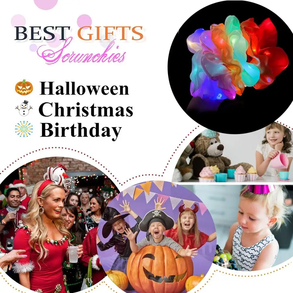 Новинка 2020, рождественские светодиодные резинки для девочек, повязка для волос, держатель для конского хвоста, головные уборы, эластичные повязки для волос, однотонные аксессуары для волос