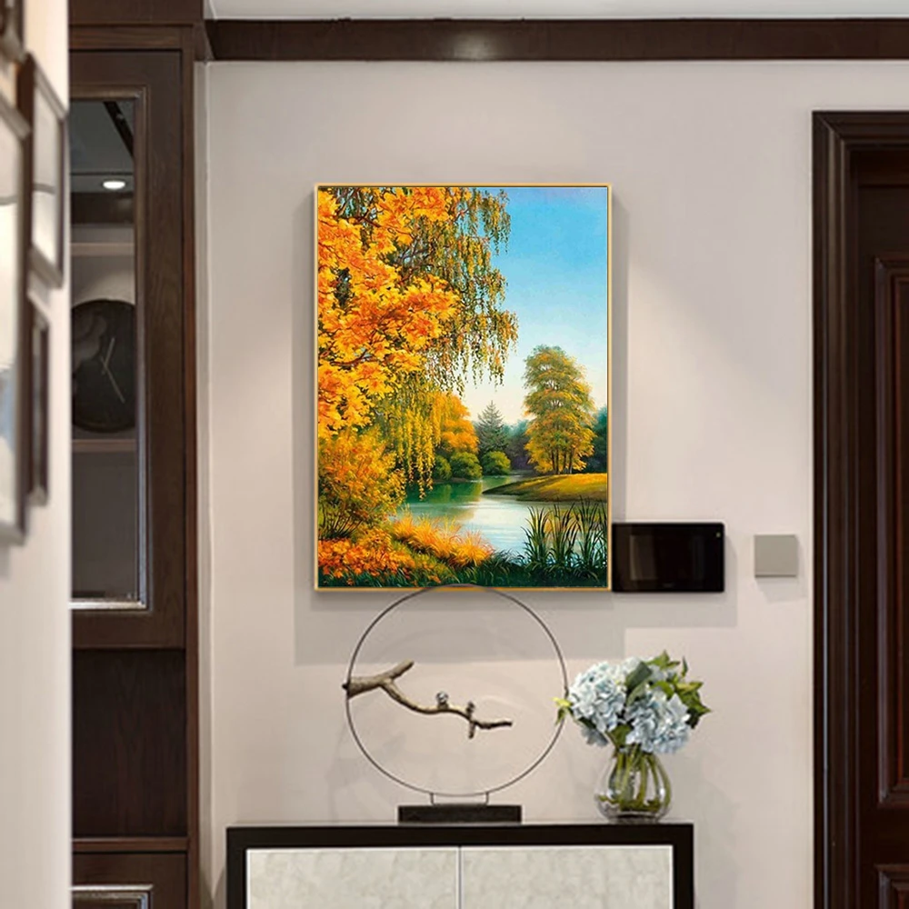 Алмазная живопись Huacan, Осенний пейзаж, вышивка, мозаика, лес, вышивка крестиком, украшение для дома, украшение для стен