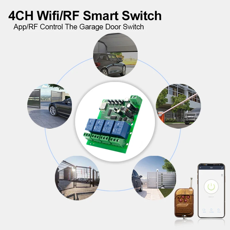 Модуль интеллектуального приемника посылка [4ch DC7-32V WIFI RF] и [4ch AC85-250 WIFI RF] имеет функцию RF, но без дистанционного управления RF. Если вам нужен пульт дистанционного управления RF, вы можете купить [пульт дистанционного управления RF]