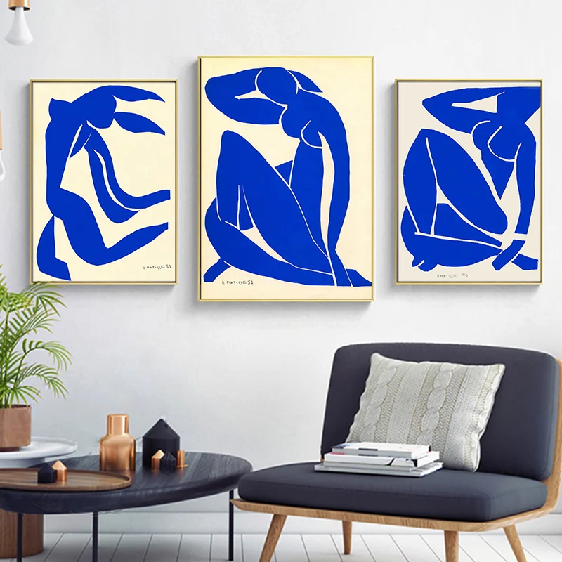 Абстрактная синяя живопись маслом на холсте скандинавские плакаты и...