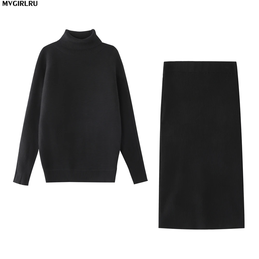 Женский трикотажный костюм MVGIRLRU, свитер с рукавом летучая мышь и облегающая юбка, комплект из двух предметов
