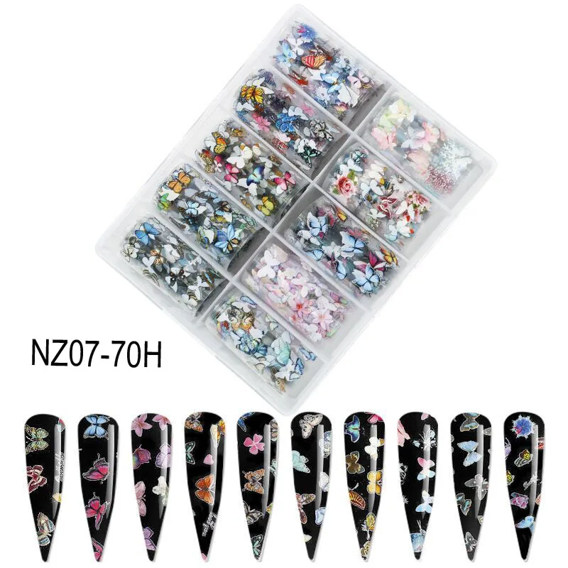 1 коробка, 10 видов цветов, решетка, фольга для ногтей, переводная1...
