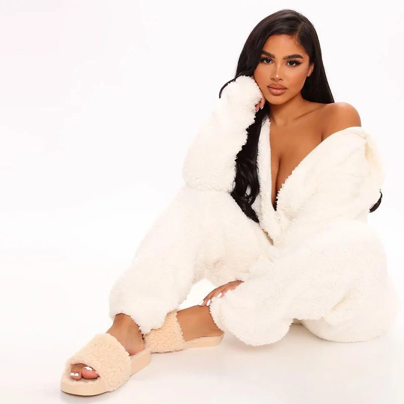 Зимний теплый Пижамный комбинезон женский пушистый флисовый комбине...
