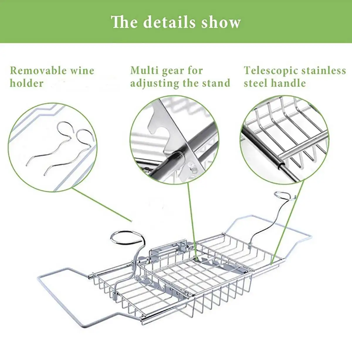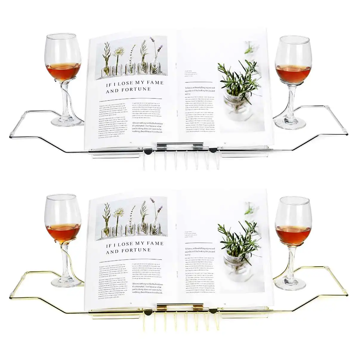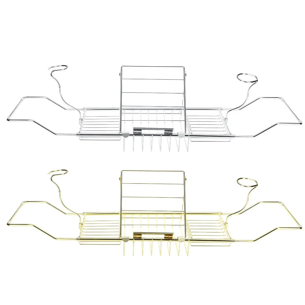 Нержавеющаясталь масштабируемый лоток для ванны ванной стеллажи для выставки товаров 2 Цвет вина книга полка держатель для душа Корзина Организатор лоток для ванны для Ванная комната полка