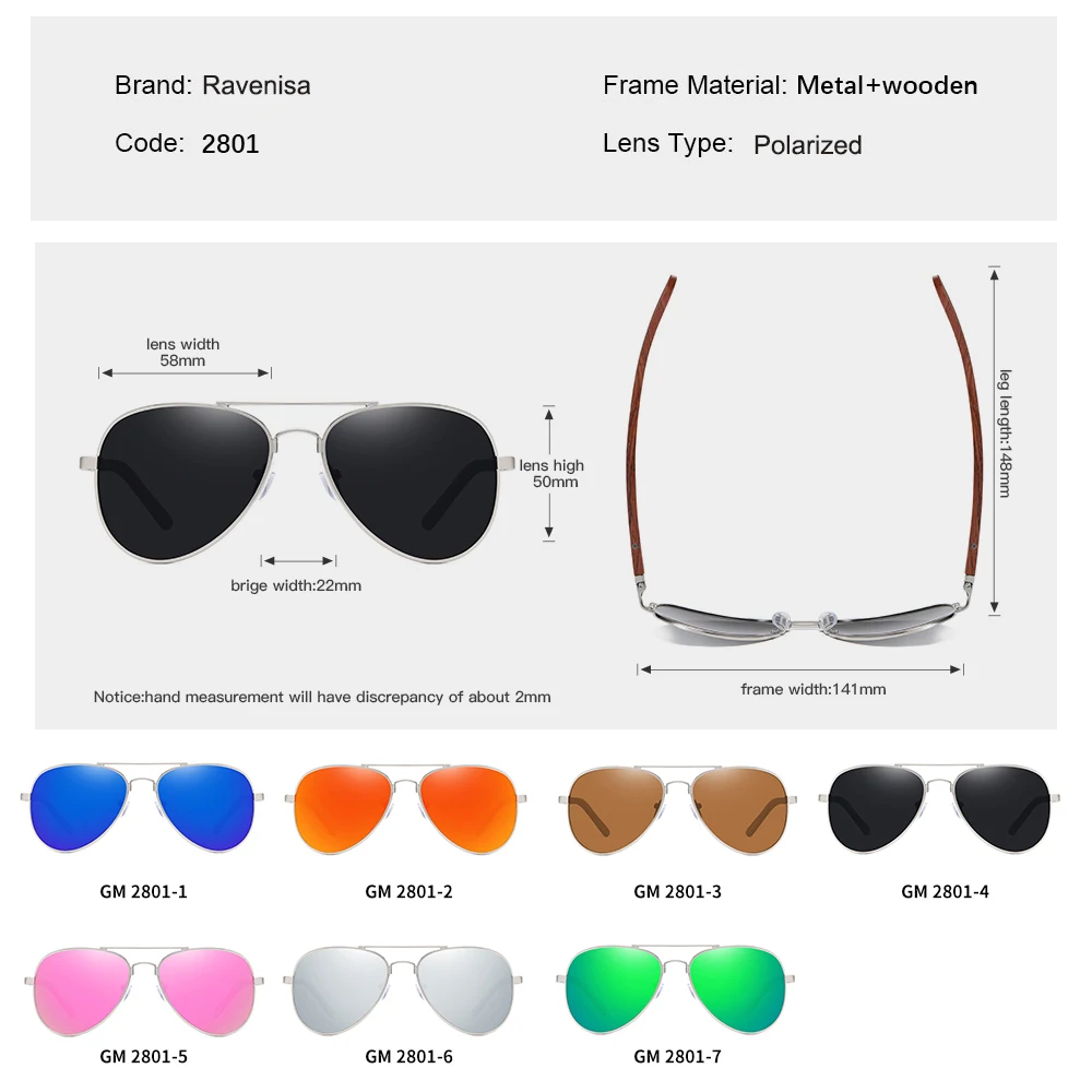 Солнцезащитные очки RAVENISA мужские, деревянные, 2020, металлические, 2801, поляризационные, защитные линзы, очки для вождения