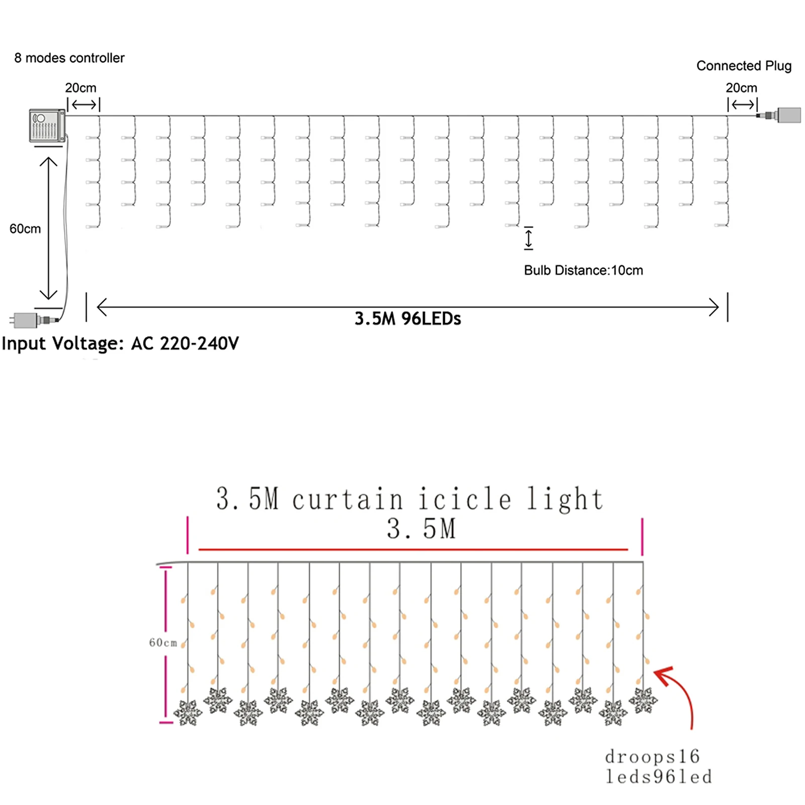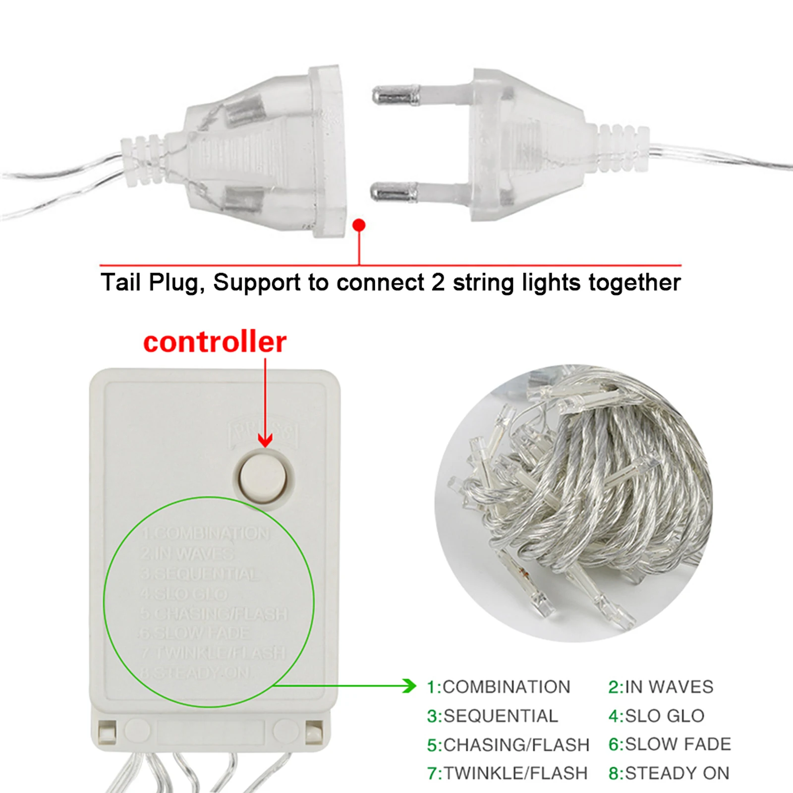 Характеристики1. С 8 различными режимами: комбинация, волны, последовательность, Slo-glo, гонящиеся за свет, медленное выцветание, мерцание/свет, постоянное включение. Вы можете использовать его в любом режиме, где захотите.2. Уровень водонепроницаемости: IP44, что позволяет использовать свет как внутри, так и снаружи (штекер не водонепроницаемый)3. С заглушкой сможет соединить многие светильник вые струны одновременно. (не более 8 струн подключсветильник4. Энергосбережение, долгий срок службы (теоретически До 50000 часов или более), светильник выбросов чистый, высокая яркость, движение не легко уничтожить, может быть повторно, холодная светильник источник, не нагревается.5. Применение: деревья в парке, Городской Ночной пейзаж, туристические аттракционы, местности, сады, свадебные Композиции, отели, рестораны, торговые здания, дома, окна, клубы, концерты, караоке-залы, модные шоу, танцевальные залы, сцены и т. д. Планировка различных мест.Спецификация:Цвет: белый, теплый белый, цветМатериал: ПоликарбонатРазмеры: развернутый горизонтально на 3,5 метров, удлинительная линия на 0,5 метров, высота провисания 0,45, 0,55, 0,65 м, поперечное углубление всего 19, всего 96 светильников, соответственно 4, 5, 6 светильников, поперечное углубление.Длина (ДхВ): 0,4 МКС (0,6 м или м)Количество светодиодов: 96 LEDs-16 одвесных проводов (высота 0,4-0,6 м)Мощность: светодиодный 6 ВтЦвет кабеля: ПрозрачныйВ том числе разъем для подключения наушников для регулятор длины: 0,8 мНапряжение: 220 В переменного токаВес: 219 гПосылка входит:1 * Светодиодный гирлянды