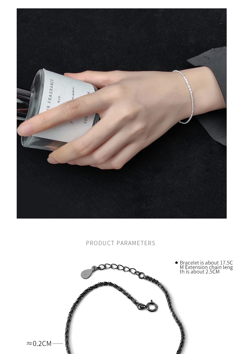 Браслет-цепочка Mocanie из стерлингового серебра 925 пробы для женщин и мужчин, изящная бижутерия, простой белый и черный цвет, звенья Гипсофилы