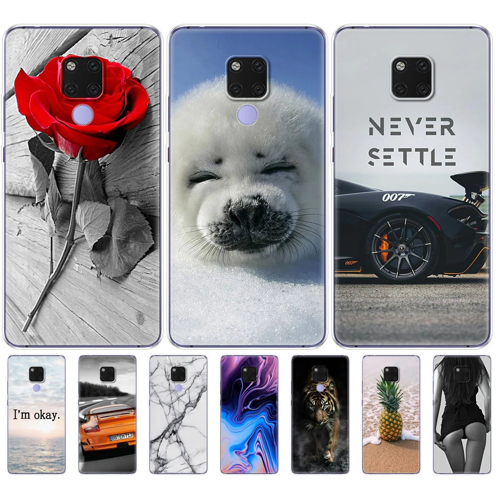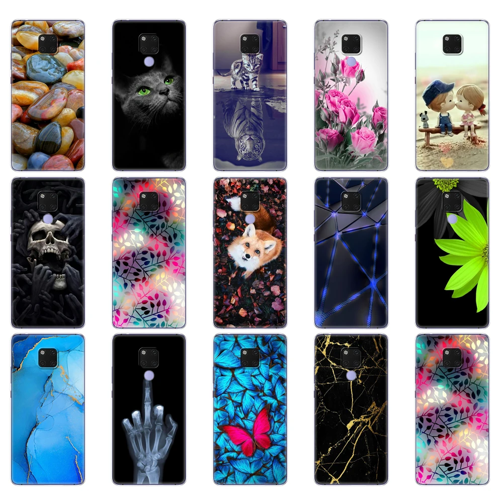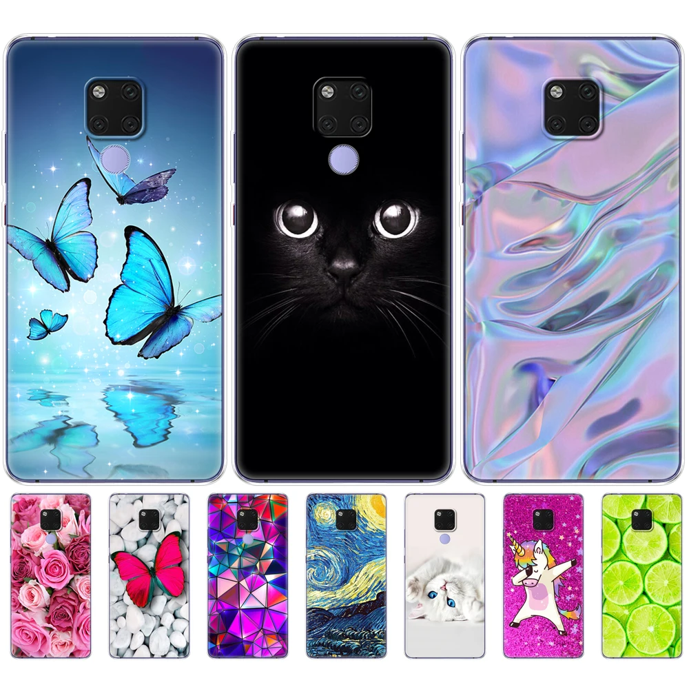 Чехол для Huawei Mate 20, 20 pro, прозрачный, силиконовый, с изображением кошек и цветов