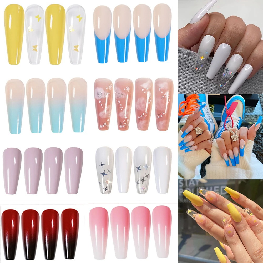 Модные накладные ногти 24 шт.компл., полное покрытие, длинный гроб балерины, сверхдлинные съемные ногти сделай сам, инструменты для маникюра