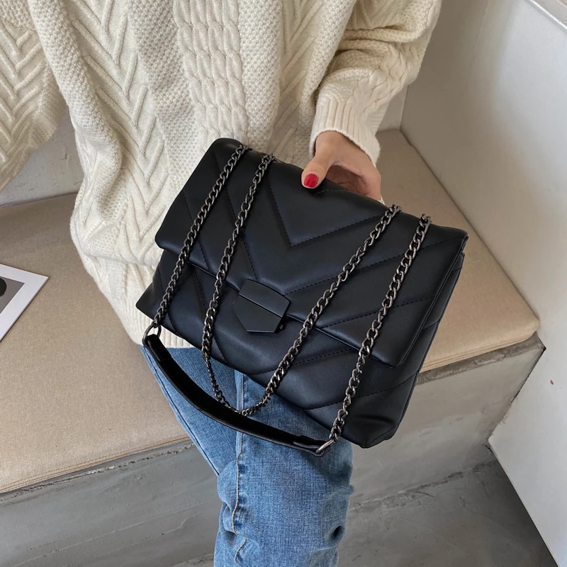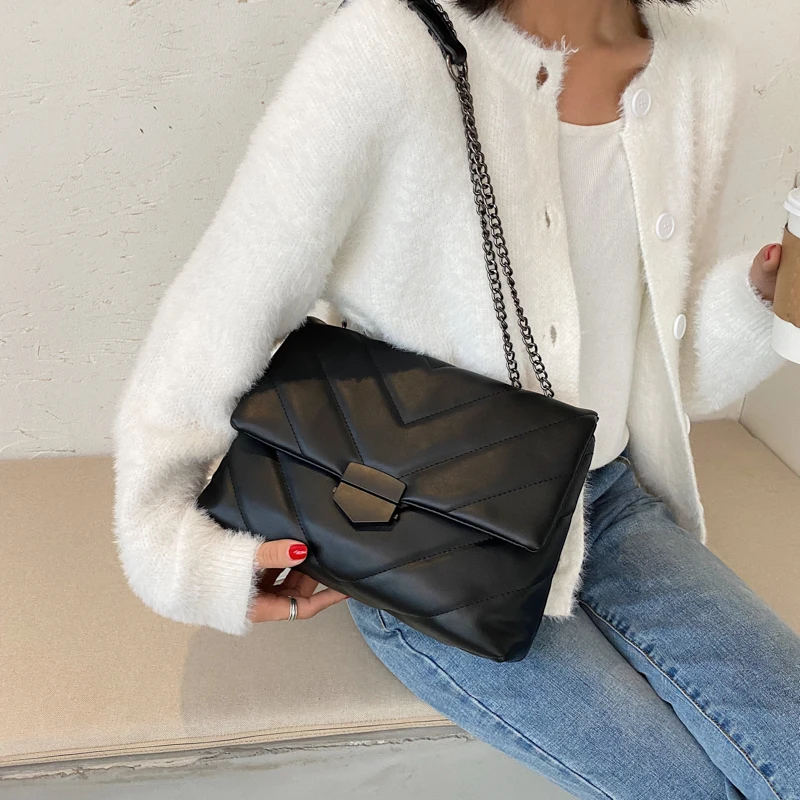 Женская сумка через плечо, однотонная сумка с V-образным вырезом и ручкой, 2020