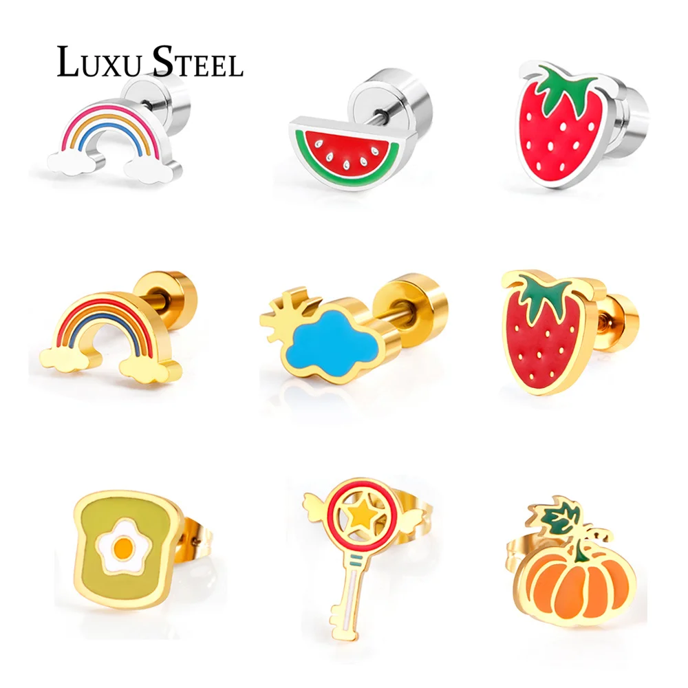Роскошные серьги из нержавеющей стали, милые радужные серьги-гвоздики в виде овощей, хлеба, растений, женские Украшения, 2022, оптовая продажа, Brinco