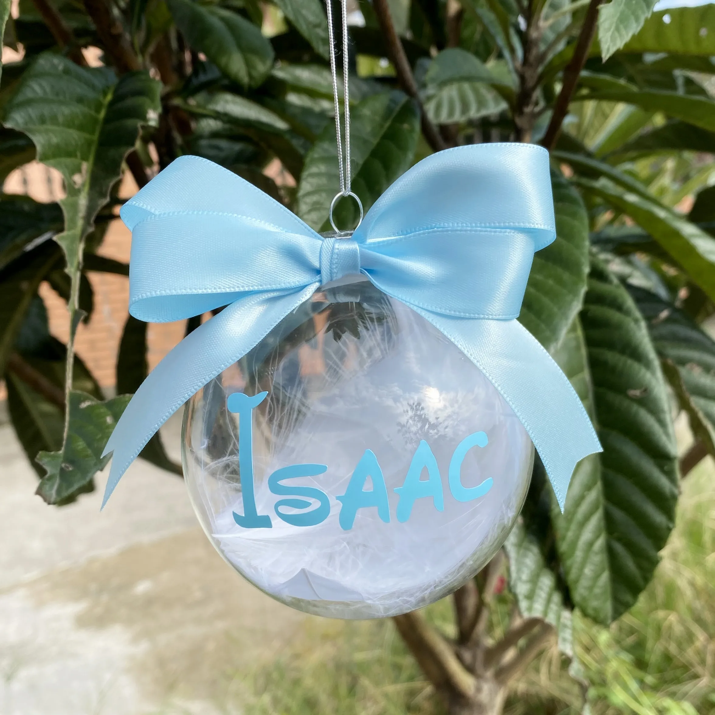Персонализированные рождественские шары, стеклянные украшения, индивидуальное название, монограмммные настраиваемые детские голубые шары, рождественские подарки